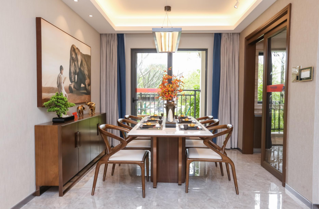 客餐厅相连,多了一份空间感,并且把视野、采光等自然因素以及聚会、社交、亲子等人文因素融合在一块,自住、迎宾都倍儿有面子。