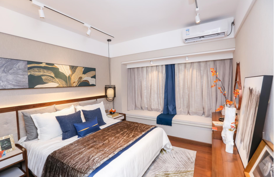 开阔飘窗设计,视野非常开阔。房间内飘窗可打造成休闲飘窗,邻窗而坐,就能将窗外美景尽收眼底。