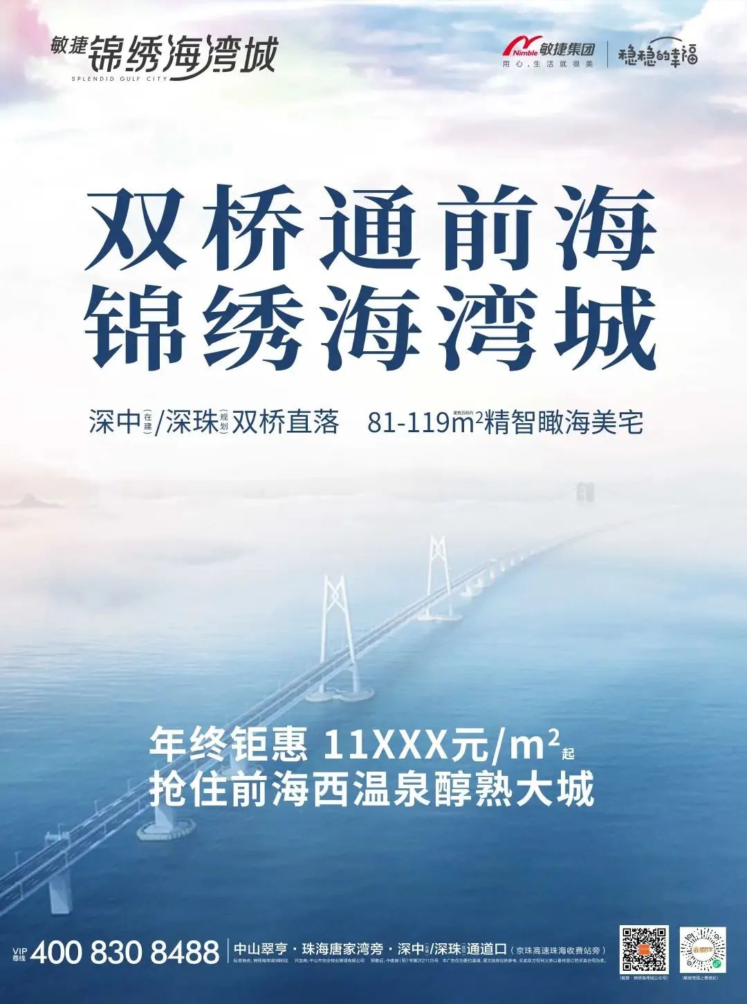 在当下黄金内湾+双桥融深的双擎强势辐射之下,敏捷集团以前瞻视野洞悉城市发展大势,把握自然生态、城市人文、生活美学之道,匠筑前海西岸匠心力作——中山·敏捷锦绣海湾城,致敬深中的城市先行者。