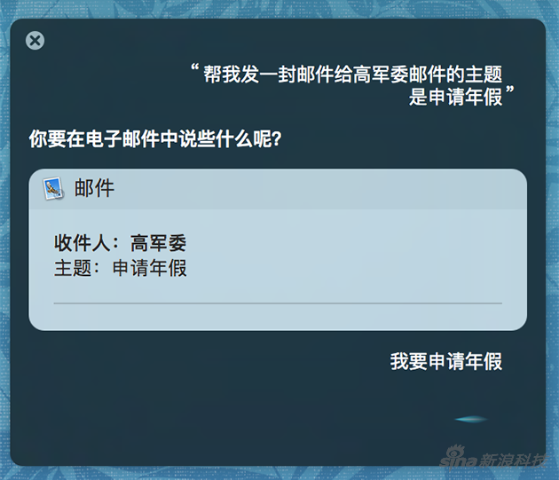 在这个过程中,除了点键盘启动Siri,不需要碰键盘或鼠标。但你得确定这样不会让周围同事觉得很怪异。
