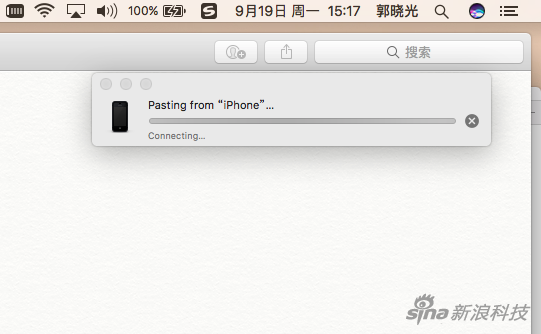 复制内容比较多的时候,会在Mac上看到粘贴进度条。