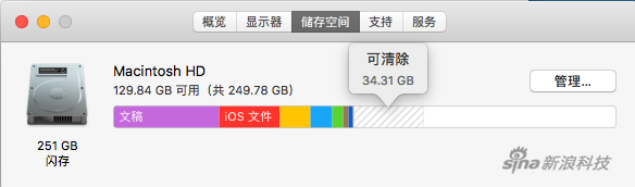相比上一版 macOS的存储管理有了变化 多了“管理”按钮相比上一版 macOS的存储管理有了变化 多了“管理”按钮