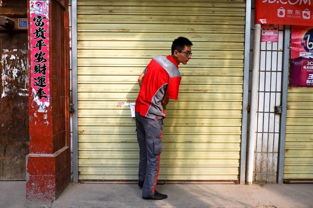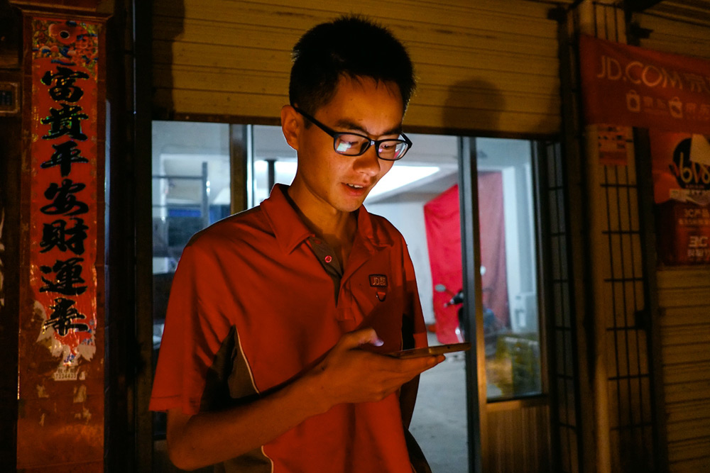 下午两点,烈日当头,一位客户把收货地址由县城中心改到了5公里外的近郊区,李文和拿着包裹站在一处树荫下等待。对于客户的要求,李文和的回答都是:“成呢成呢,好好好。 ”他从没显露出丝毫的不耐烦。