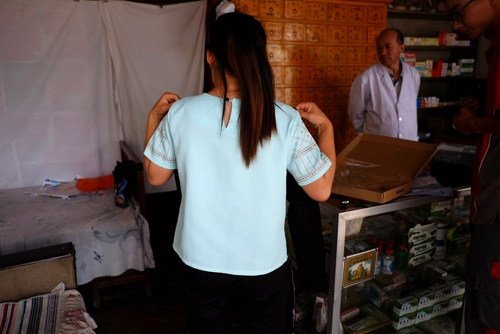 货到付款、开箱验货和送货及时,因此,在京东上通过第三方购买服装,成了和政县很多女性顾客的首选。衣服拆包后,顾客们大多会拿着往身上比划,然后问:“合适吗?好看不?”有些顾客试完会满意地收货付款;有些则因为布料不合适、颜色不好看、布料不好等问题直接选择退货。