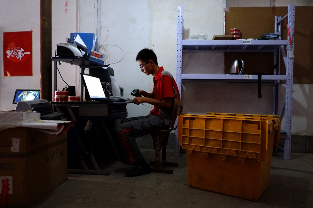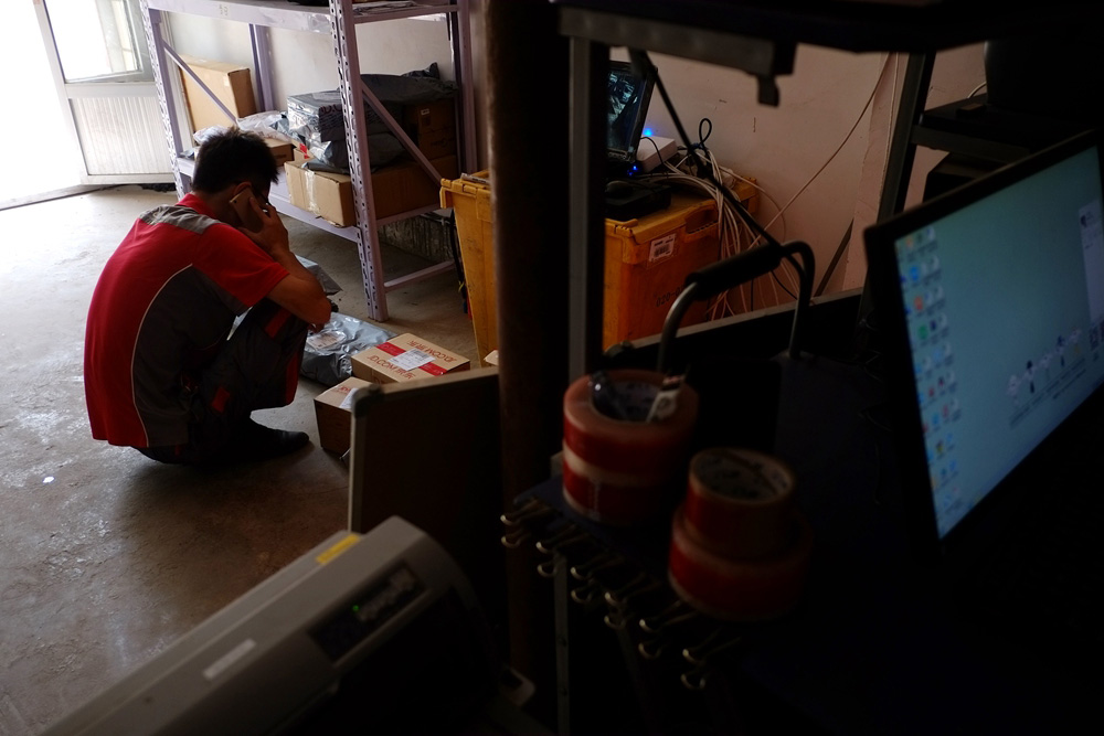 自从站里的小伙伴被调走,李文和便独自承担起了配送站的所有工作。站点需要24小时在岗值班,因此,虽然家近在咫尺,但回家对他来说并不是件轻而易举的事。“媳妇偶尔会抱着孩子过来看看。有一回,家里来了亲戚,我爸打电话让我回去招呼一下,但当时头手还有几单货着急要送出去,就没回去。”李文和一边低头操作着一体机,一边说话,表情平和。“家人就没有怨言吗?”我问。“也有点,我爸说我为了小几千块钱的工资连家都不回了。”他呵呵笑道。