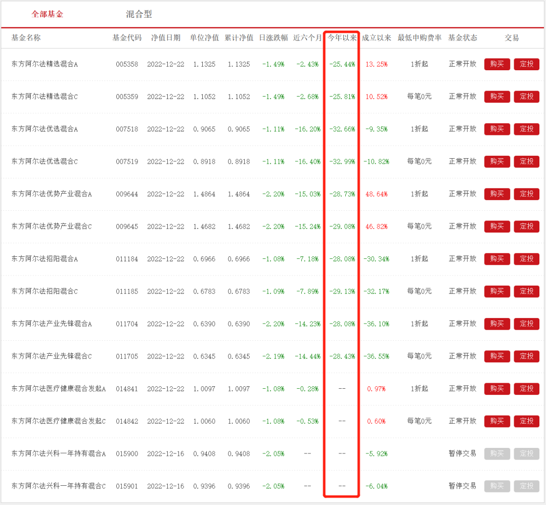 投研薄弱,东方阿尔法基金旗下产品年内普遍回撤逾20%