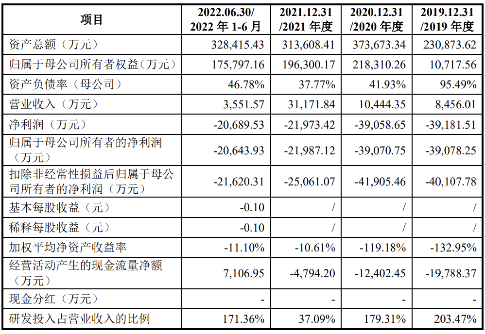招股书显示,公司专注于商业航天领域,是我国第一家集卫星研发制造、运营管理和遥感信息服务于一体的全产业链商业遥感卫星公司。公司股权相对分散,不存在控股股东和实际控制人。2019年、2020年、2021年、2022年1-6月,公司实现营业收入分别为8456.01万元、1.04亿元、3.12亿元、3551.57万元,同期实现归属于母公司所有者的净利润分别为-3.91亿元、-3.91亿元、-2.2亿元、-2.06亿元。