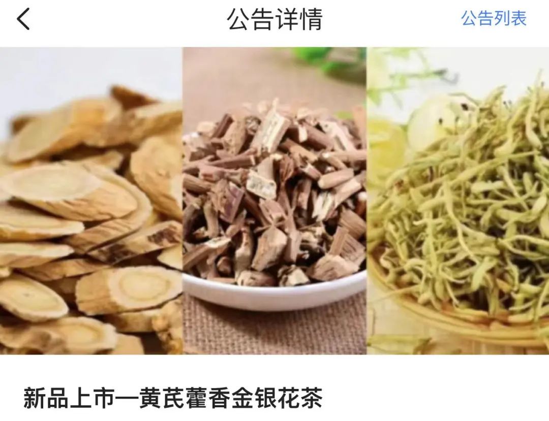 前几天,人民日报推荐了一款包含黄芪和金银花的预防饮品,“这个产品,我们也紧急做了研发,黄芪藿香金银花茶马上就要上线了。”胡开基表示。