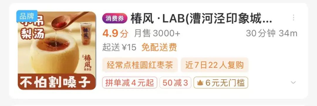 如今,椿风的线上外卖头像,已经换成了小吊梨汤的图,并且配上了一句“不怕割嗓子”的应景文案,销量飙升到了门店第一名。