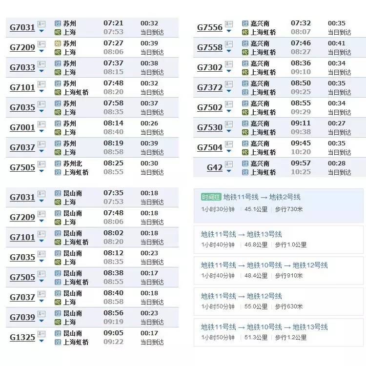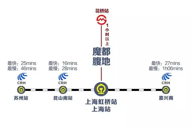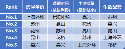从交通的便利性出发,选择周边城市时必须考虑有到达上海的高铁或者城际线路,这样可以选择时间成本较低的通勤方式,也能实现跨区域办公。因此M君选择了苏州、嘉兴、昆山和花桥来做比较。花桥是一个比较特殊的地方,虽然花桥属于昆山市下辖,但是可以乘坐地铁11号线直接到达(花桥站)。