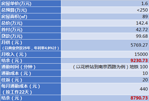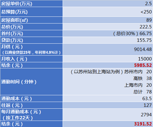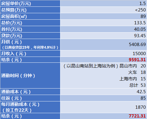 在距昆山南站五公里范围内还是有很多在售楼盘可以选择的,单价基本在1万到1.8万之间,选择一个中间价格1.5万,再计算在昆山置业的生活成本: