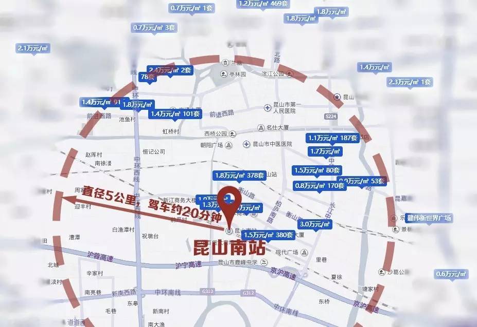 昆山应该也是非常值得考虑的一个地方,毕竟有很多在上海工作的外地人已经在昆山买了房子。虽然驾车从昆山到上海市中心也仅仅需要1小时20分钟左右的时间,但是如果小新还是乘高铁前往上海