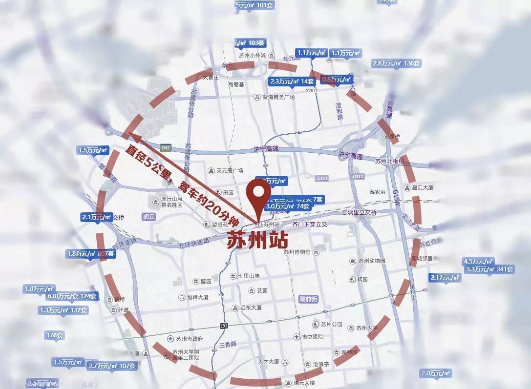 小新心仪的苏州,今年房价也一路飙升,想要找到一套性价比高的安身之所实属不易。按照小新的打算,新房需距火车站五公里以内,这样才有可能实现跨城生活。从房价来看,离苏州站最近的在售楼盘,单价都在2.8万到4.5万之间;苏州站向南靠近环城快速路附近的房价也都接近3万/㎡,而苏州站向北延伸的方向,在售楼盘单价较低,一般在2万/㎡左右。