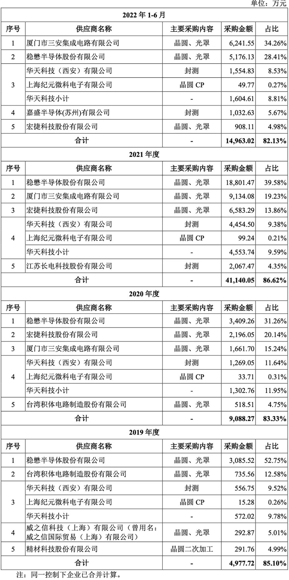 报告期内,其前五名供应商的采购金额分别为0.50亿元、0.91亿元、4.11亿元、1.50亿元,占比分别为85.10%、83.33%、86.62%、82.13%,采购集中度较高。