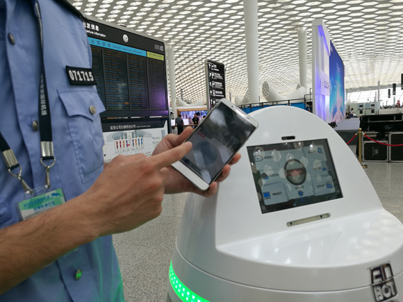 深圳机场为什么要引入智能安保机器人?张彪表示,近年来全世界的反恐形势比较严峻,深圳机场的警力严重不足,整个机场辖区有200平方公里,只有200多警力,而航站楼每天有近10万人来往。