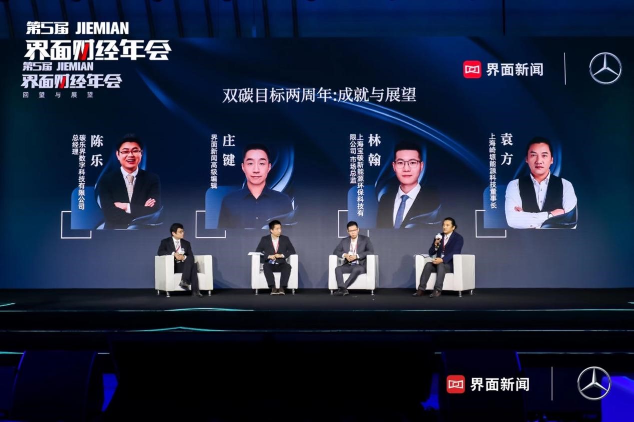 由上海报业集团界面新闻主办的第五届【界面财经年会】于12月20日在上海中心成功举办。界面新闻高级编辑庄键、上海宝碳新能源环保科技有限公司市场总监林翰、上海崎塬能源科技董事长袁方出席年会,并在碳乐界数字科技有限公司总经理陈乐的主持下,以《双碳目标两周年:成就与展望》为话题展开了圆桌对话。特别鸣谢本次年会战略合作伙伴梅赛德斯-奔驰。