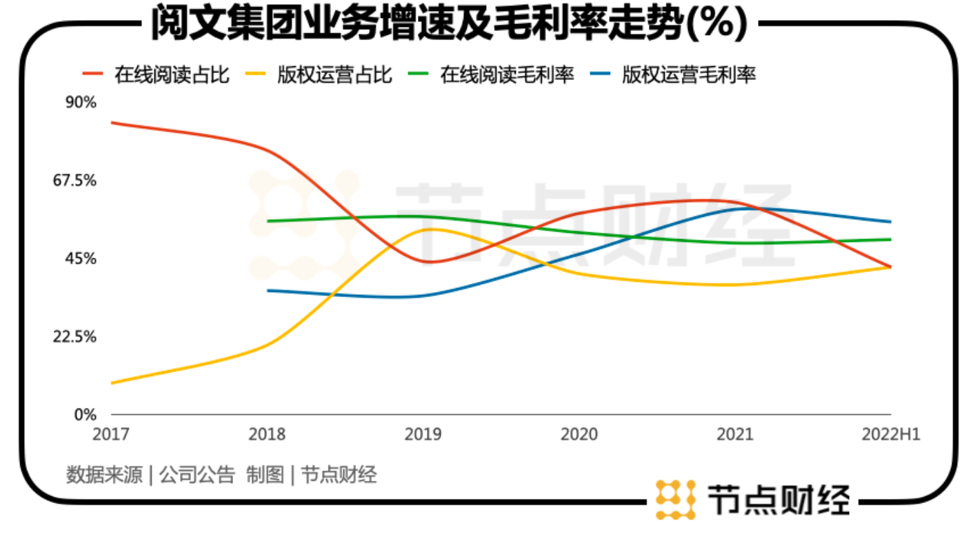 从表中可以看到,版权运营业务在2020年和2021年经历了下滑,但回看其2018年上市至今,整体表现仍是上升的,而且2021年的毛利率超过了在线阅读业务。