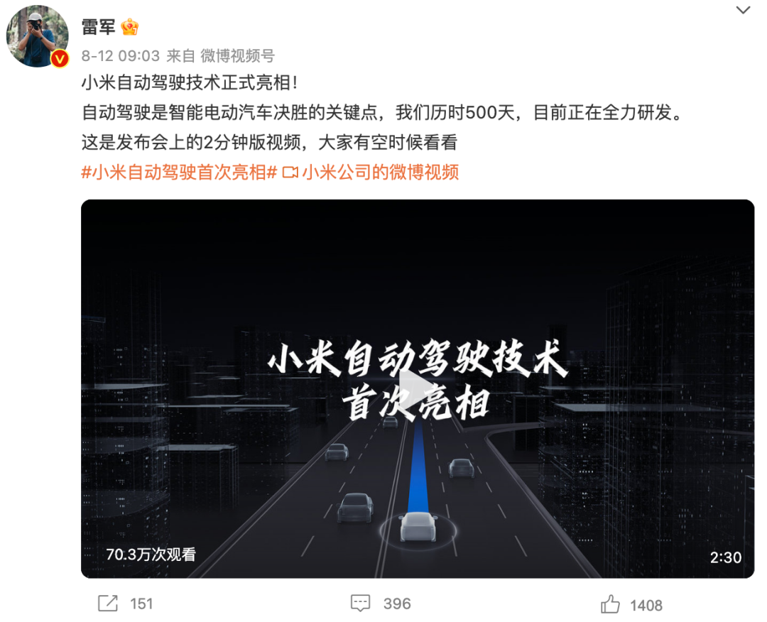 与此同时,小米的造车业务也在牵动着小米的生命线。