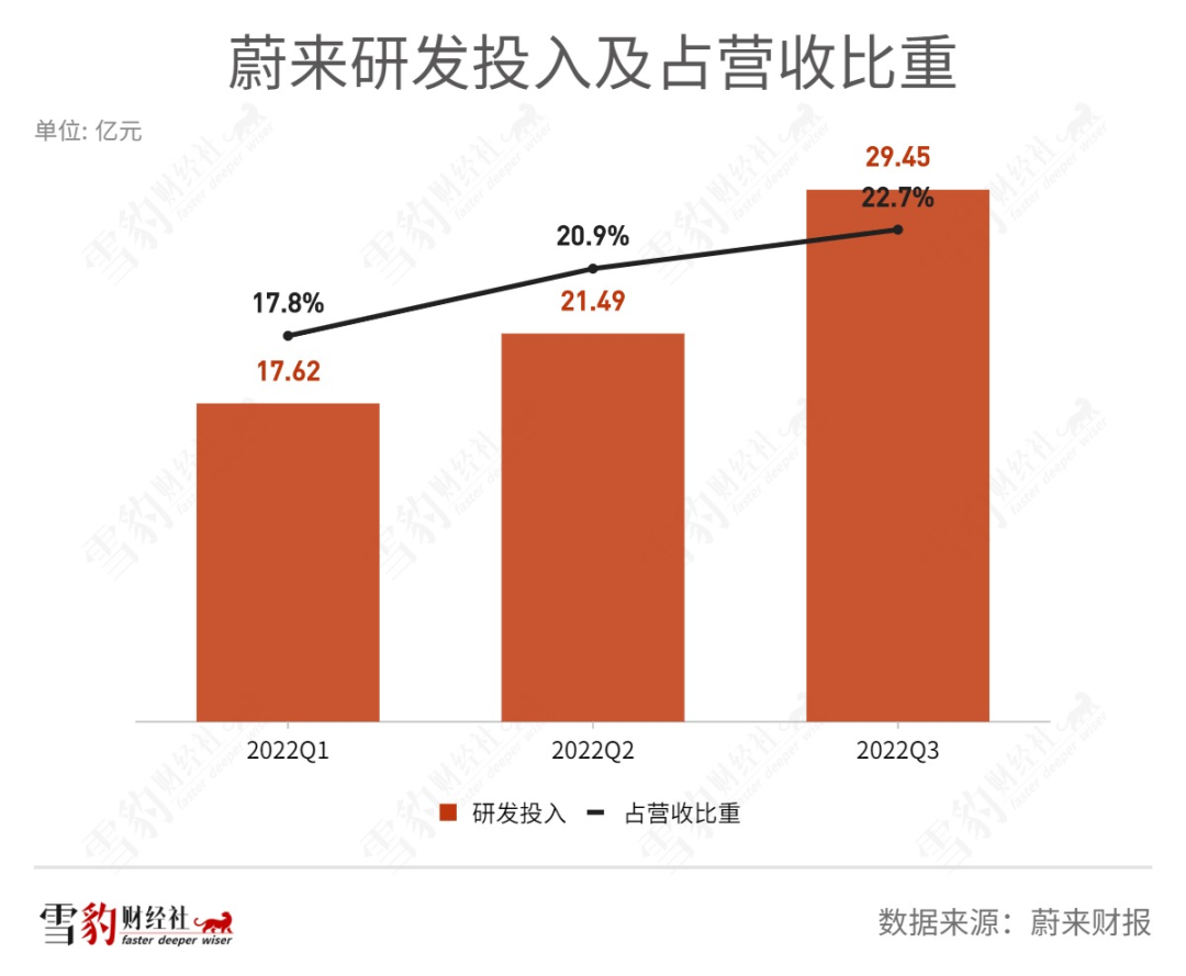 李斌在今年Q3的财报电话会上表示,Q3研发投入的提高,主要是因为公司在电池、芯片等领域的研发投入有所增长,这是蔚来计划的一部分。接下来,蔚来的研发投入基本会保持在每季度30亿元人民币的水平。