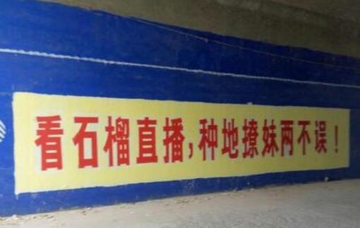 而且为配合这次更换阵地,前不久六间房石榴直播还“大闹”了一把农村,在继淘宝、京东后,石榴直播也在农村民墙刷起了神文案,如“看石榴直播,种田撩妹两不误”“村花村草齐上阵,石榴直播真带劲”“石榴直播就是好,别人老婆你家跑” 。。。