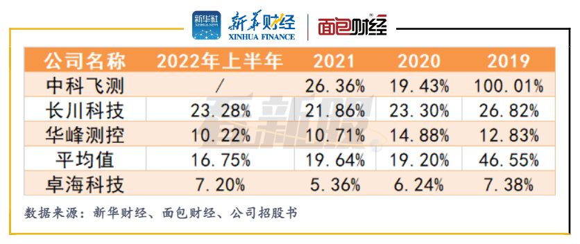 尽管公司业绩呈现增长态势,其毛利率仍低于行业均值。2020年-2022年上半年,卓海科技的毛利率分别为63.33%、63.07%以及68.25%,低于行业均值0.26、2.55及4.99个百分点。