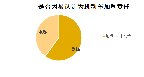 因被认定为机动车而适用有关机动车的规定(包括行政、民事案件)导致超标电动自行车承担加重责任的案件有3件,占60%,未导致其承担加重责任的有2件,占40%。