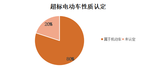 其中将超标电动自行车认定为机动车性质的案件有4件,占80%;未认定为机动车性质的案件有1件,占20%。