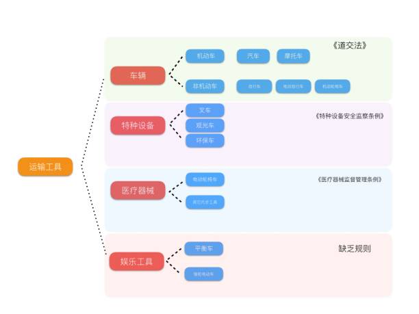 基于上述理由,法律意义上的车辆运输工具涉及的领域是复杂而有交叉的,我们在讨论涉及车辆的行政管理、民事赔偿、保险理赔、刑事责任时,首先应该区分不同法律语境下的运输工具的定义,再进行分别的讨论与研究。结合上述不同法律法规、国家标准,我们将运输工具的分类建立一下模型: