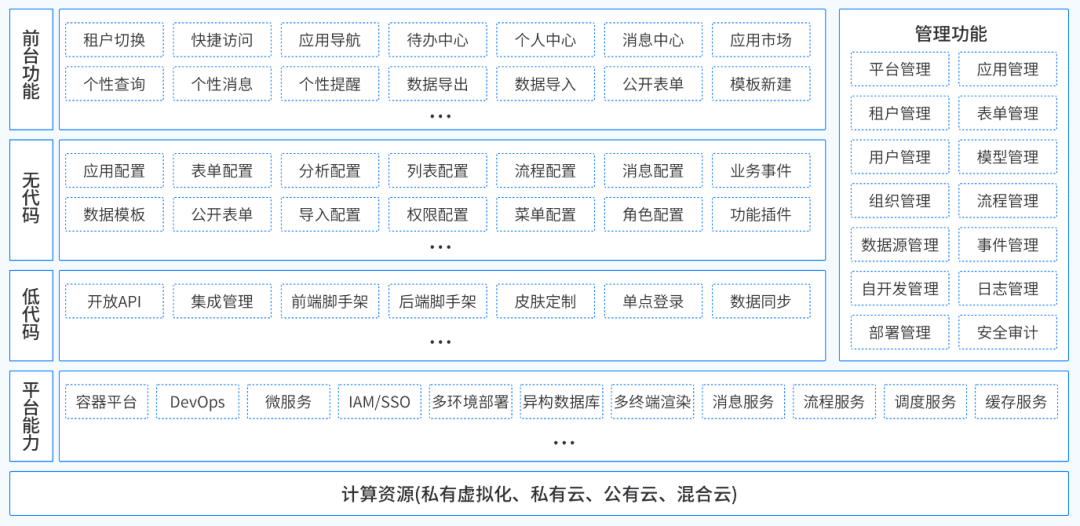伴随着云服务市场的成熟,各项技术趋于稳定。API与各技术的齐头并进也使得多种技术资源输出更加便捷,客户和普通大众可以在低代码平台轻松完成各自的产品和服务开发。