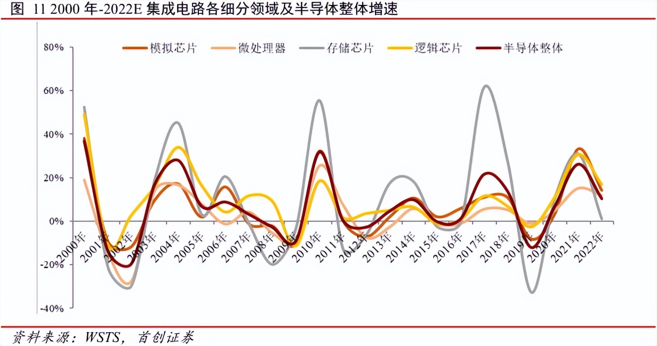 正是因为下游应用的广泛性,所以模拟芯片不仅市场规模足够大,而且很难受到单一行业需求变化的影响,也因此普遍被认为周期性较弱。