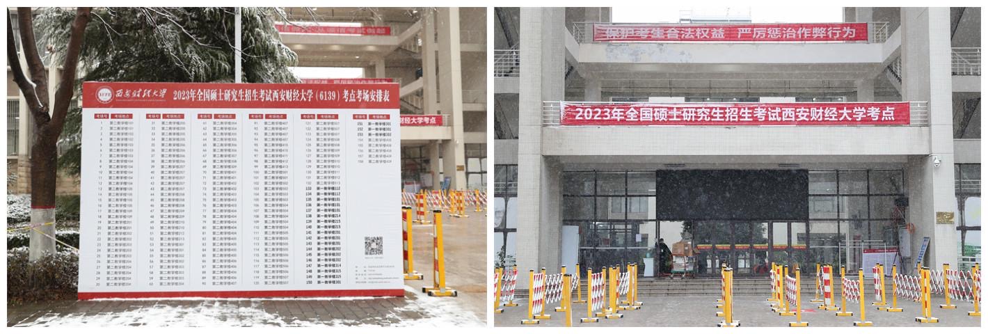 12月24日至26日,2023年全国硕士研究生招生考试如期举行。西安财经大学考点位于长安校区,共有4703人报名参加考试。面对疫情形势新变化,组考工作面临着前所未有的严峻挑战,学校党委高度重视、统一部署,各单位密切配合、齐抓共管,广大教职员工响应号召、冲锋在前,举全校之力确保2023年研考工作安全、平稳、顺利进行。