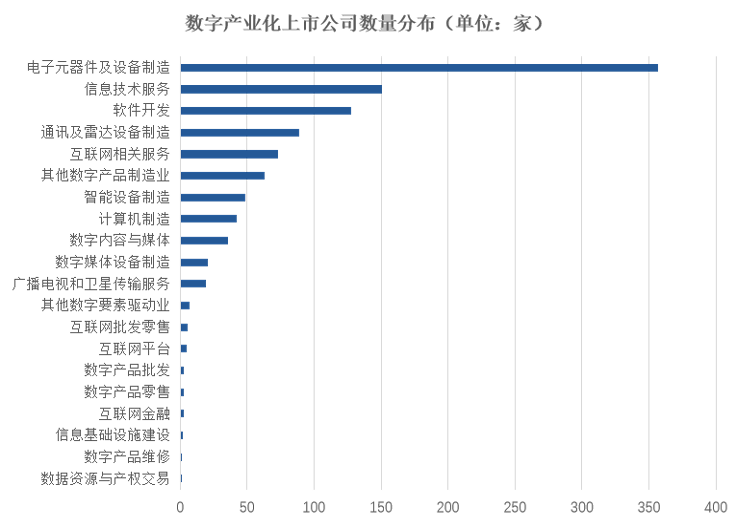 而天眼查报告显示,在数字产业化领域的上市公司,大多集中在“电子元器件及设备制造”领域,共有357家公司,占比34%,“信息技术服务”和“软件开发”次之,分别有151家和128家公司,占比14%和12%。技术类企业在数字产业化领域上市公司的高占比,彰显出我国数字产业化的高质量发展。