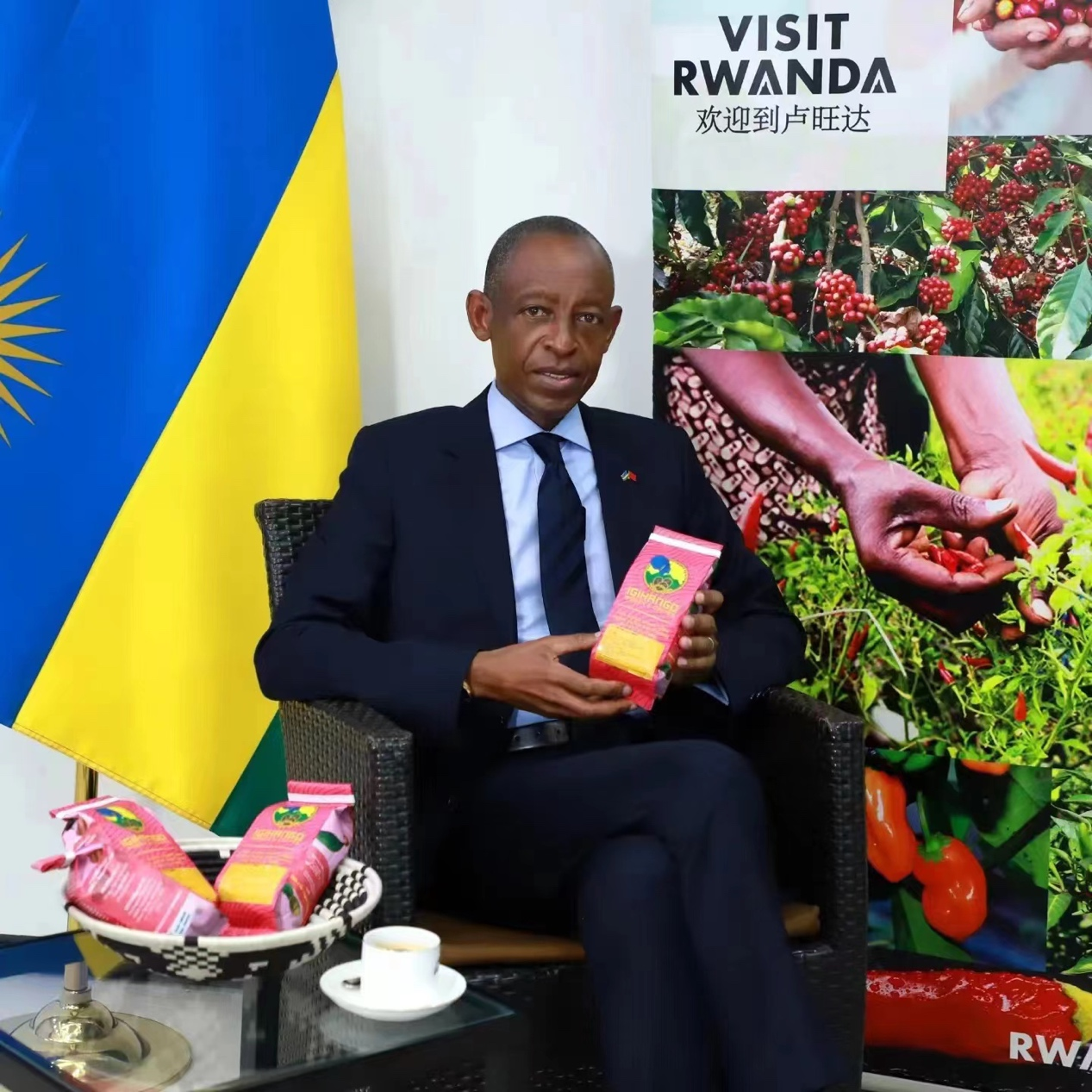 △卢旺达驻华大使基莫尼奥介绍产品