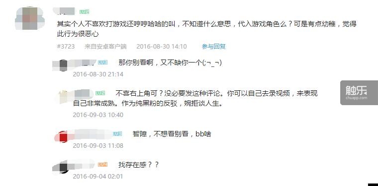 评论者至少要对这个游戏有所耳闻,甚至可能相当熟悉;这个视频在很多时候必须要出现在主页或者热门榜单上,否则,那些真正讨厌这个游戏的人很可能永远也看不见这个视频;这些人必须有极强的忍耐力和极高的行动力,因为换做是我,可能只会对着电脑(或手机)屏幕用眼神或者鼻音发出冷笑,并不会点进去,更别提还要花上几秒难熬的时间来写下那些评论或者弹幕……