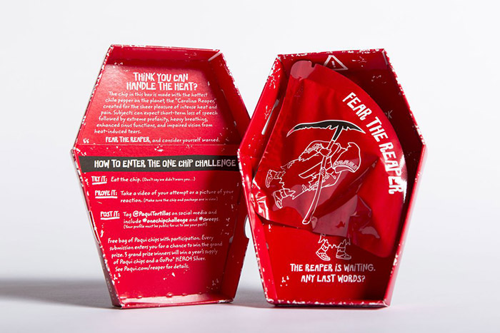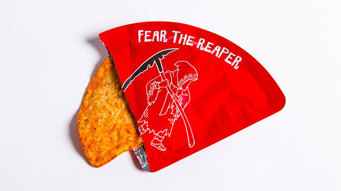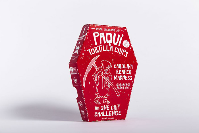 想知道变态辣的极致是什么?你可以试试卡罗莱纳死神辣椒玉米片。卡罗莱纳死神辣椒是吉尼斯世界纪录所记载的全球最辣辣椒,而这款“世界上最辣的玉米片”究竟辣到什么程度,从包装上就可以看出:为了安全起见,它每次只售卖一片。