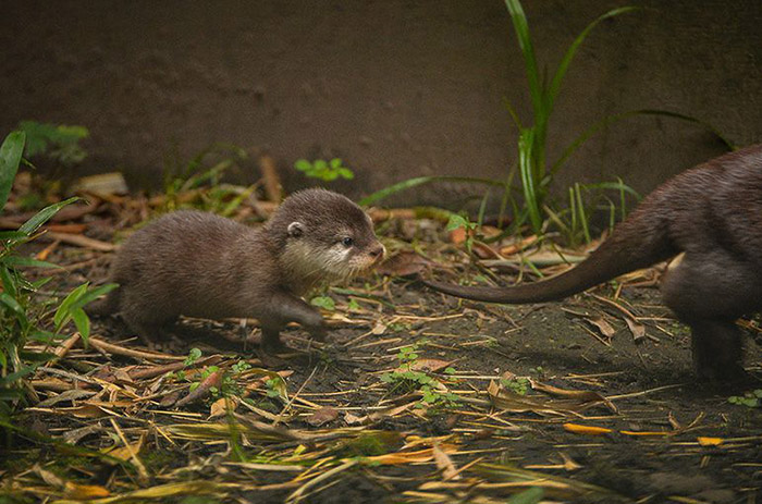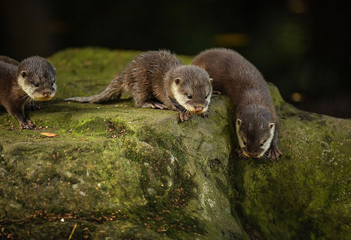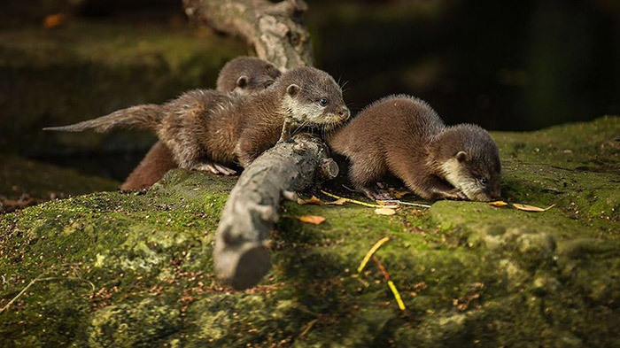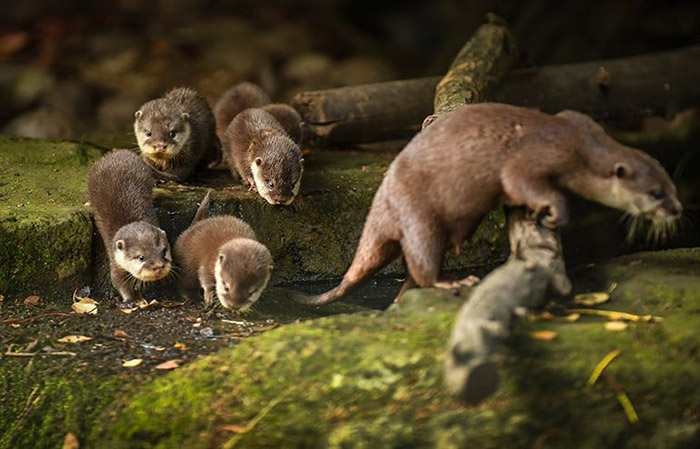 看惯了猫猫狗狗的你有没有注意过那些生活在河畔的小萌物呢?英国切斯特动物园就有这样一群可爱的水獭小宝贝,它们跟随妈妈出现在动物园的五分钟新闻栏目里,立刻萌化了所有观众。