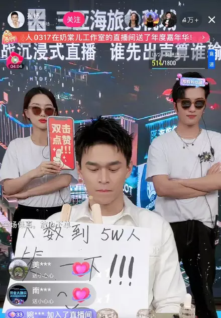 后面的背景板上写着这样一句话:挑战沉浸式直播,谁先出声算谁输。