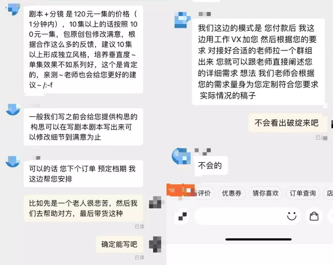 甚至有网友称:在淘宝能定制“苦情剧情”,店主宣称有很多合作的网红,并列举了具体账号名称,90元一集,10集以上80元一集。只有你想不到的,没有他们写不出的。