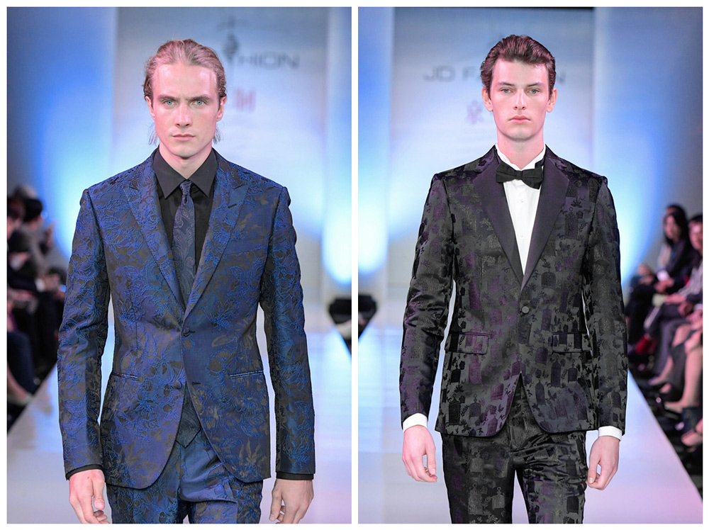 Kevin Kelly(凯文凯利)是一家中国的高级定制男装。这次的秀场款依旧是剪裁合身的西装,而图案则是使用了中国的手工刺绣针法,外套、裤子和领带形成一致的花纹。