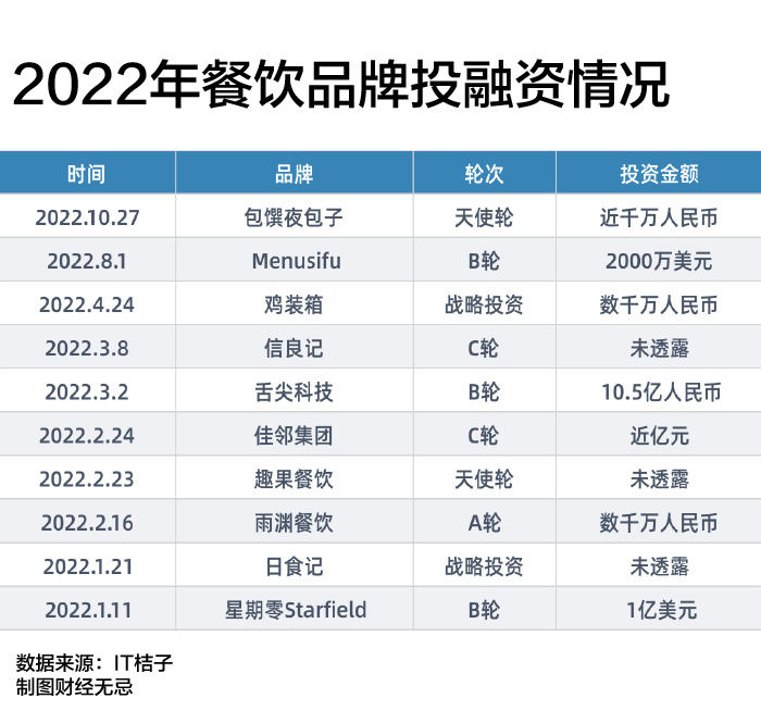 但疫情之后,万事万物回归常态,速生速朽的互联网思维与网红打法无法改变这个传统行业“适者生存”的本质。据IT桔子统计,年初至今,餐饮行业总计发生10起投资事件。百福控股CEO王小龙曾表示:“很多投资人开始不看餐饮了,大牌的投资机构都处在观望的状态。”