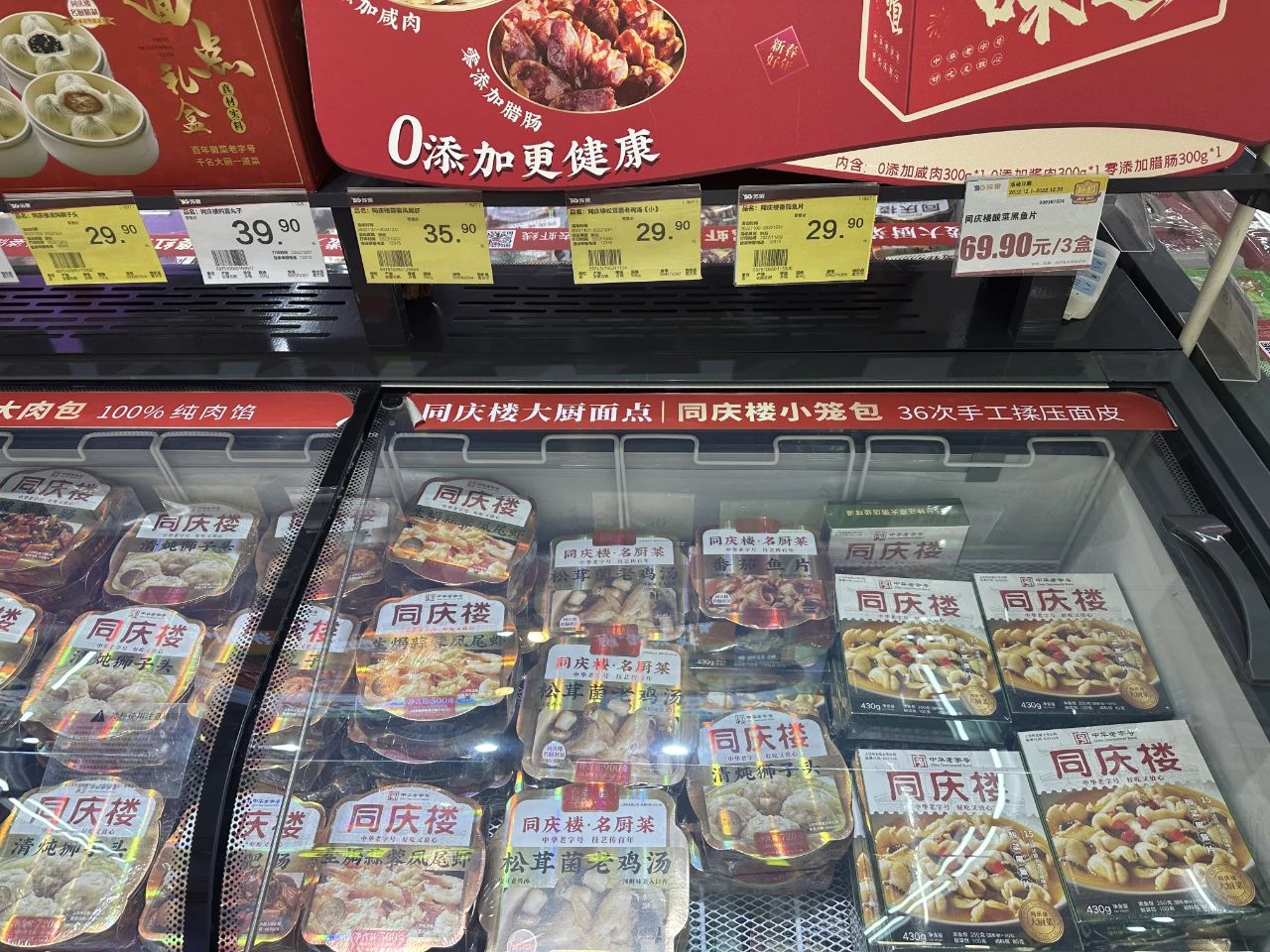 (超市内,同庆楼的预制菜冰柜 /作者摄)