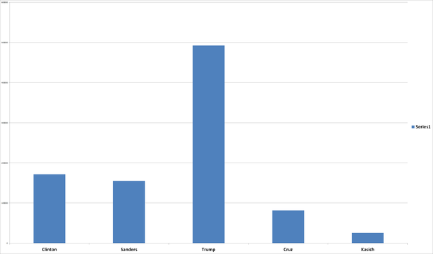 在政治选举中,社交网络也成为候选人们投入越来越多的一块阵地。他们在Twitter上发表观点、塑造亲民形象,甚至互相打嘴仗。“大嘴”特朗普就屡次在Twitter上发表争议言论,或者干脆亲自和其他候选人掐架。他这种语出惊人的风格,也让他成为了“最受关注”的总统候选人,粉丝数量更是遥遥领先其他竞争者。
