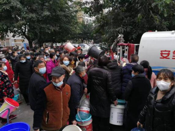 由于此次爆管口径大、难点多,无法快速恢复供水,为保障周边居民用水需求,岷江水厂紧急抽调4辆送水车,设立12个临时取水点,24小时为周边居民免费送水,以解燃眉之急。