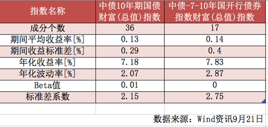根据Wind资讯数据统计,中债-7-10年国开行债券指数财富(总值)指数的年化收益率为7.83%,而中债10年期国债财富(总值)指数则为7.18%。