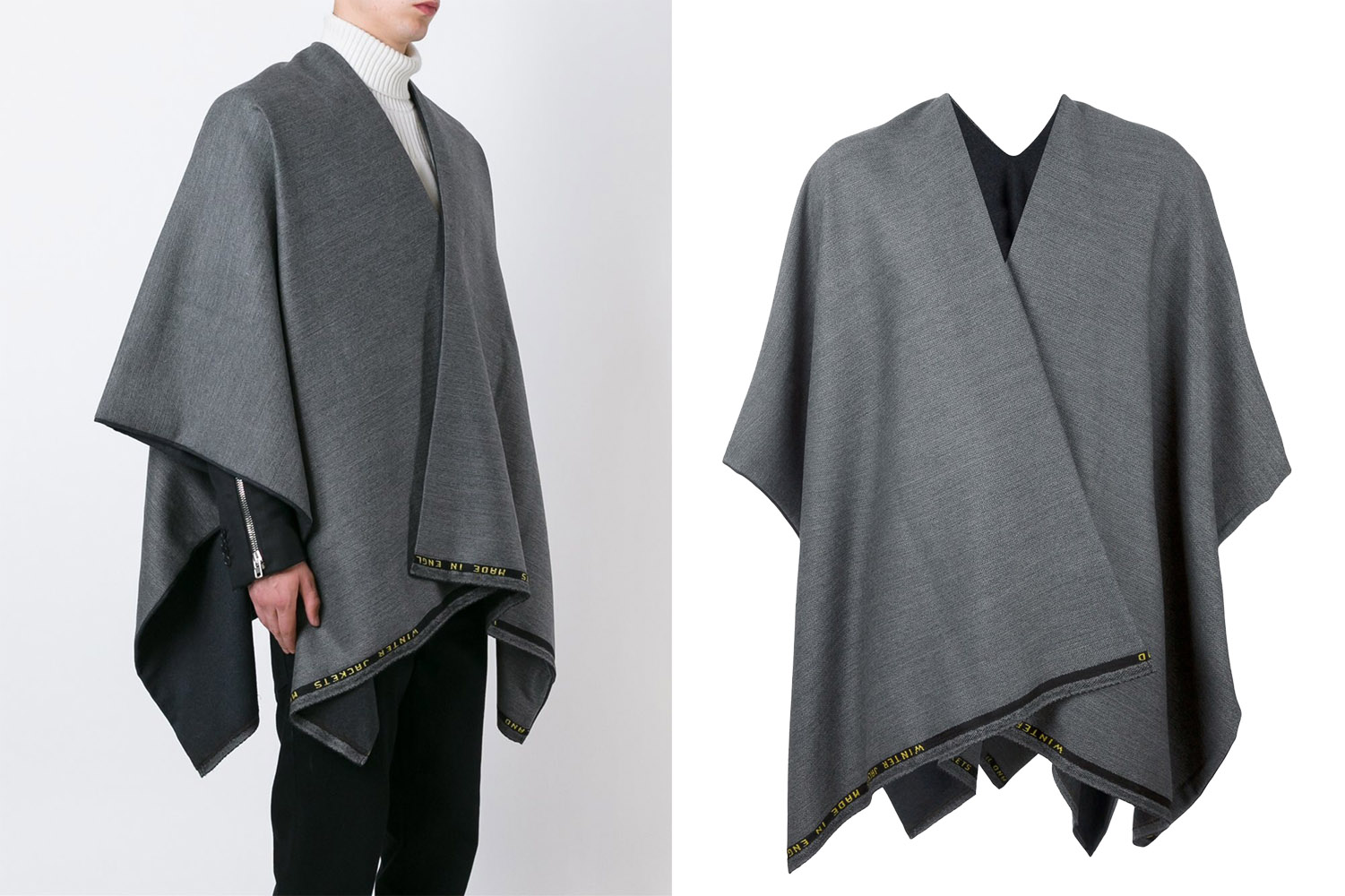 说到披肩斗篷,很容易让人联想到“超人”这种老梗,在很小的时候男孩们似乎都很吃这一套,这是关乎正义感之类的一种很强烈的情愫。而长大后,大多数男生将这一类单品划分在“花俏”的行列里,觉得大概只有女孩们才适合这些转个圈衣摆会飞扬的单品。