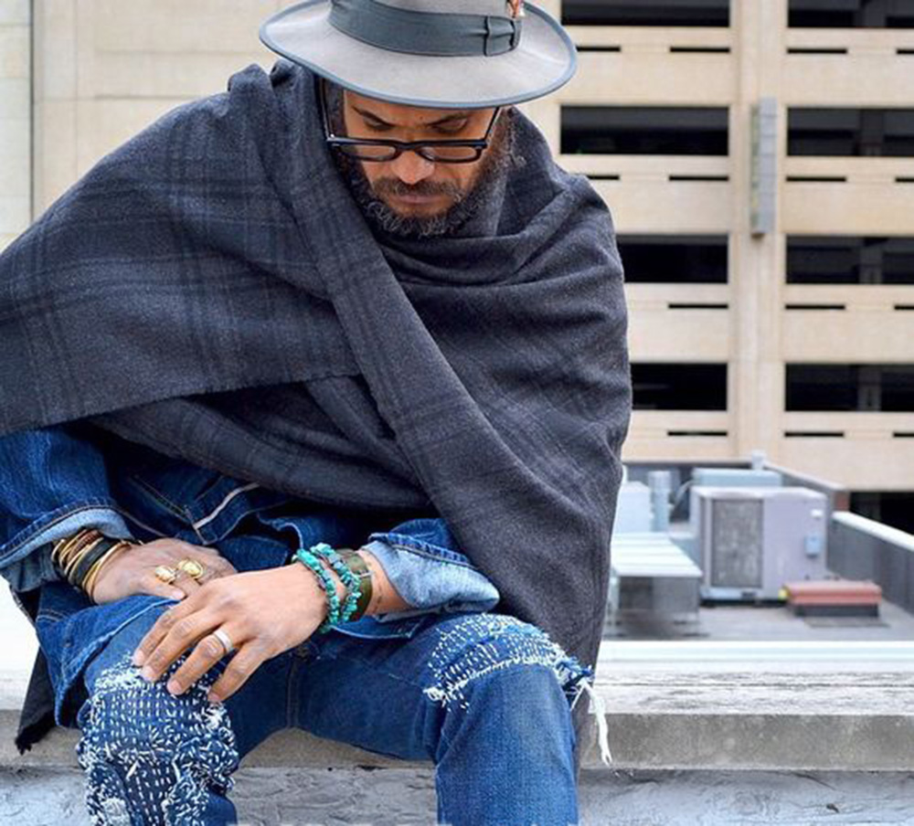 披肩用类似于围巾一样的披戴方式来使用,一定程度上增加了肩膀的宽厚度,这对于偏瘦或是肩窄的男生来说是一个很有利的因素,被围绕住的上半身色调简单,但通过布料的叠加又带来丰富的视觉,最简约的牛仔裤和靴子此时是最合适的标配,显得非常休闲和舒适。