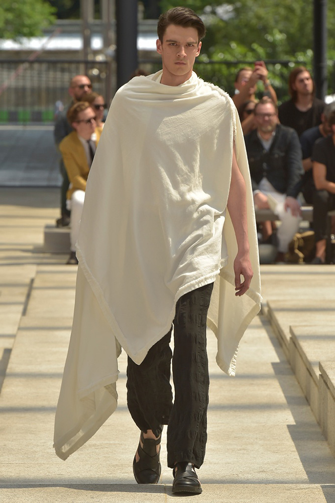成衣化的披肩带来更多的便捷,不必费太多心思去想怎么围绕更好看,也不用整天去捣鼓滑落的披肩。男装的款式很少会给人带来动感或飘逸的感受,披肩的存在是少数打破这一单调格局的存在,不可否认的是它对于气质的挑选还蛮严格,也就是说,披肩只适合某种气质的男士,有些英伦范儿,有点“花美男”。黄褐色系的棉麻料子尤其适合带有流浪者气息的男士,话不多那种。