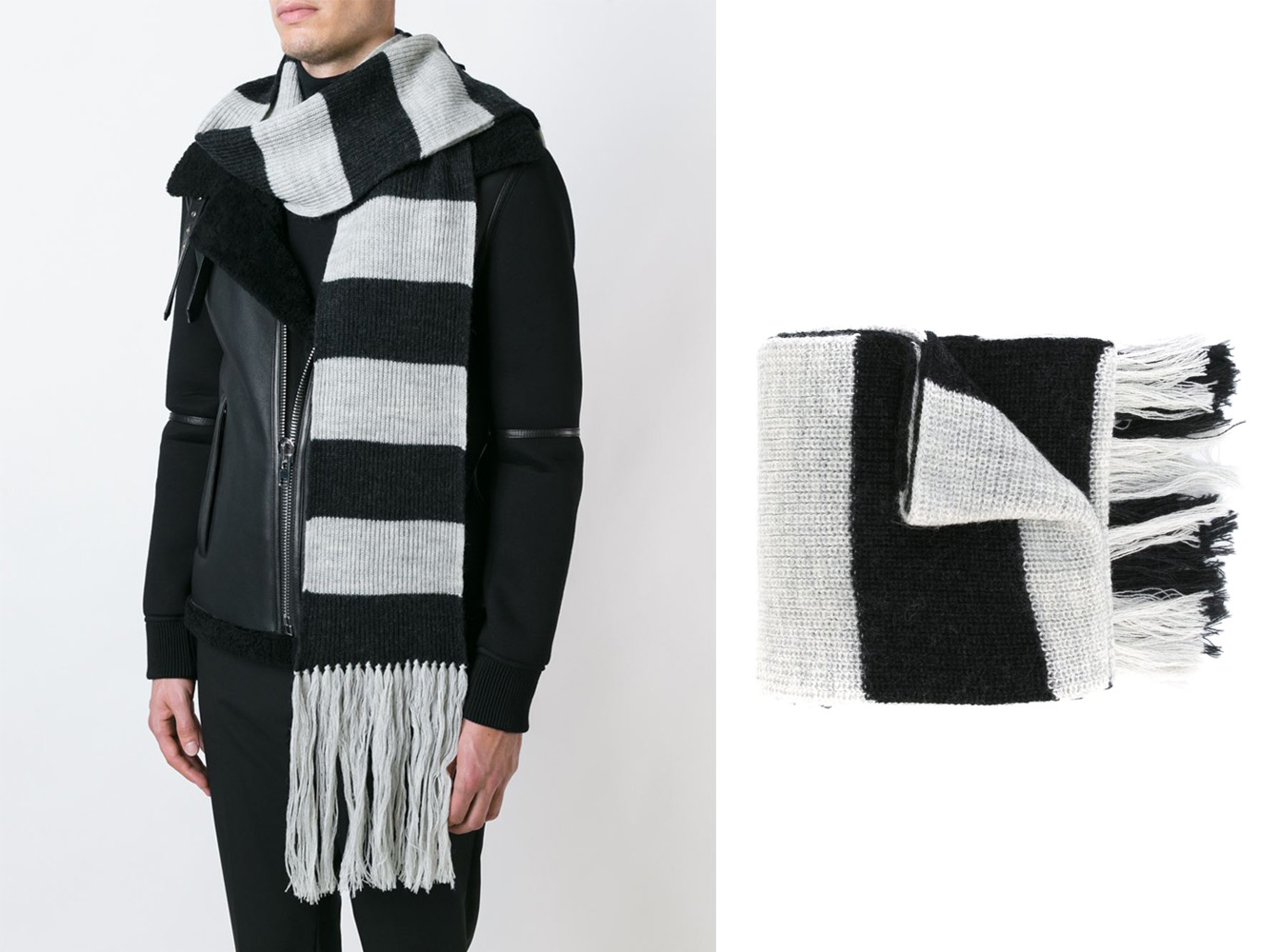而今天想讲的是质感偏厚,幅宽也够有料的围巾,比较“压得住”整体的造型。(很粗很厚实的围巾都是暖男的标配)边缘带有小小的细节处理,像是毛边、流苏、滚条等等,都可以为你增色不少,也在很大程度上缓解了秋冬季有些无趣的造型。