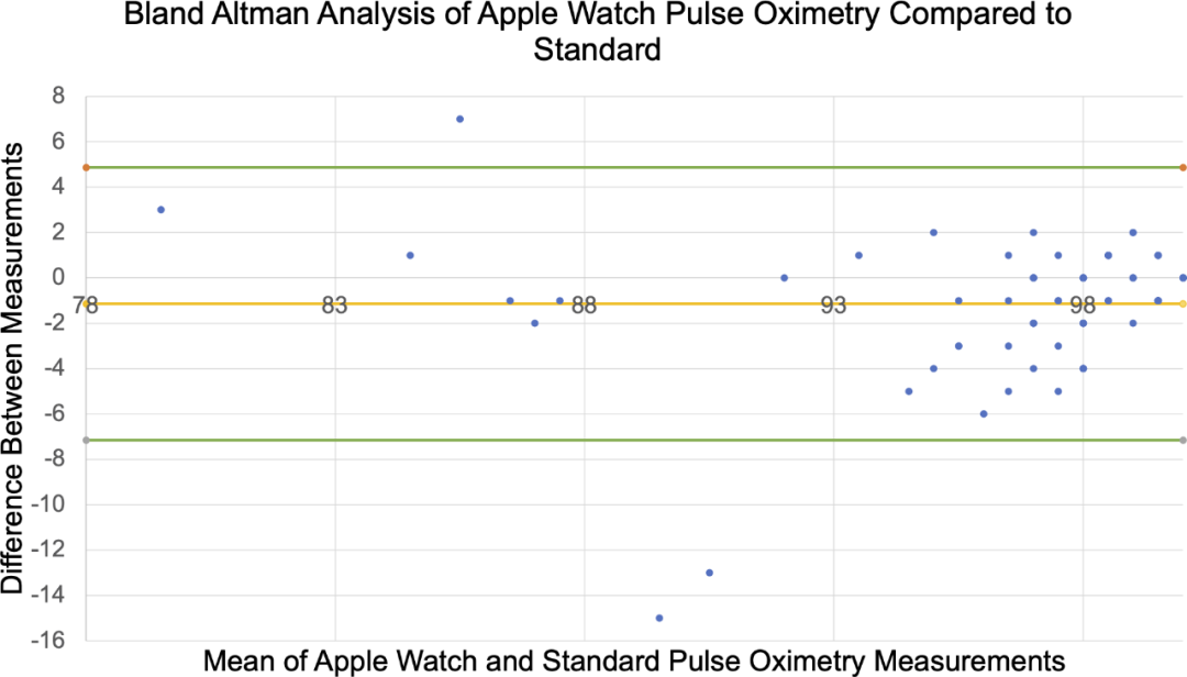 一项发表在Digital Health上的研究发现,Apple Watch Series 6与医疗级标准血氧仪的平均偏差约为1.2%;当血氧水平低于90%时,监测结果与医疗级的偏差在8%以内;对于90%-100%的血氧水平,监测偏差在6%以内。