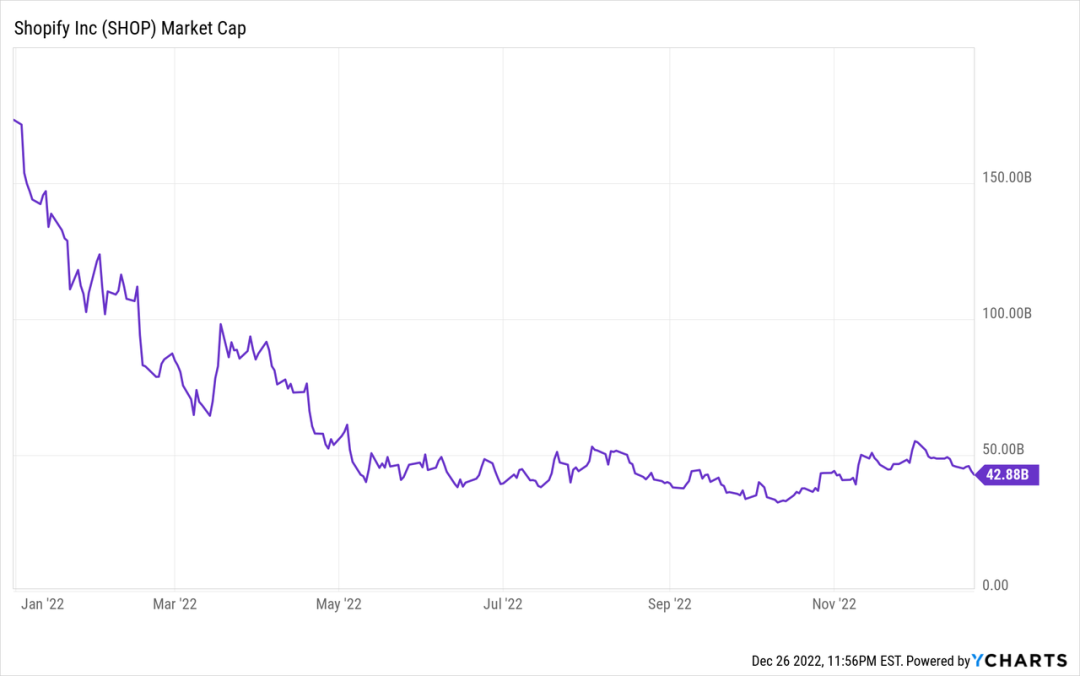 而向这些跨境商家提供“武装力量”的Shopify,其高速增长的神话也终结于今年二季度——财报公布之际,CEO一纸公开信承认误判电商市场增速并宣布大裁员的行动,令人唏嘘。在全球经济下行、通货膨胀、利率上涨等因素的影响下,Shopify显然未能摆脱营收及利润增速放缓的阴霾。其股价距离最高点时已腰斩近80%,回落至疫情前的水平。